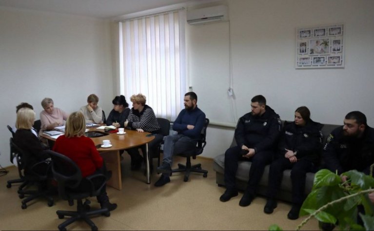 За одним столом зібралися медики, представники суду, управління соціального захисту населення ВМР, фахівці Денного центру соціально-психологічної допомоги, мобільної бригади та поліцейські офіцери громади й району.
